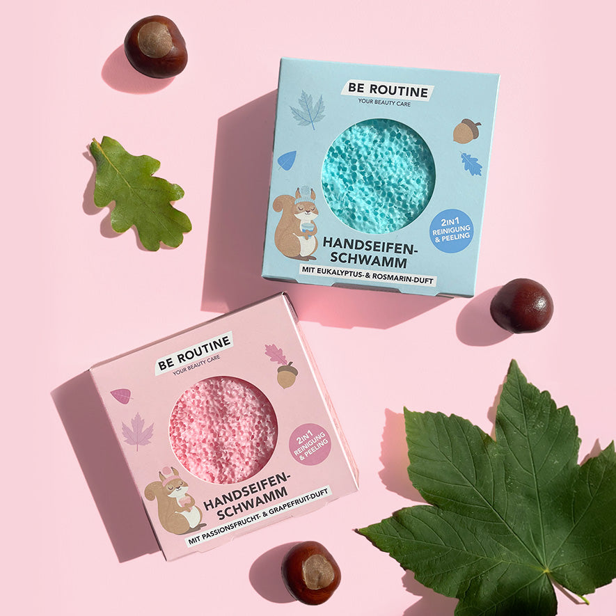 Der BE ROUTINE Handseifen-Schwamm mit pflegender Seife reinigt deine Hände gründlich, aber schonend - Peeling-Effekt und Handmassage inklusive!