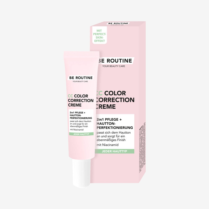 Mit der be routine Color Correction Creme strahlt Deine Haut jeden Tag mit einem ebenmäßigen, perfektionierten Teint! Die Creme mit Niacinamid passt sich deinem Hautton an und sorgt für ein ebenmäßiges Finish. Die leichte, feuchtigkeitsspendende Textur verschmilzt nahtlos mit deiner Haut, für einen natürlichen glowy Look.